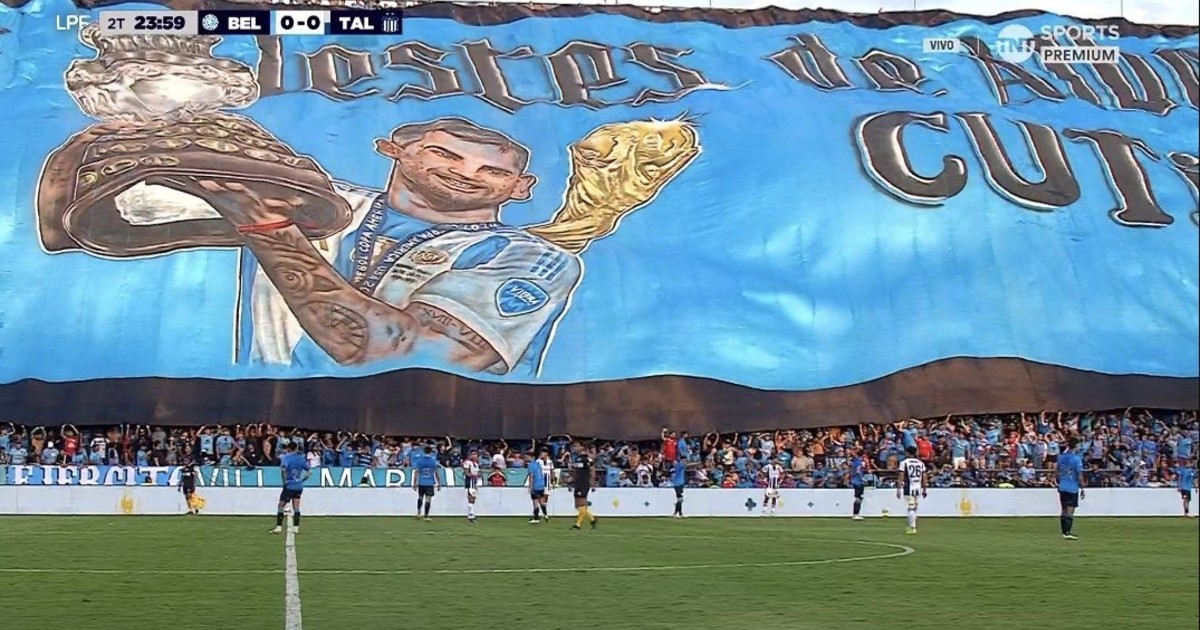 Video: la imponente bandera del Cuti Romero que desplegaron los hinchas de Belgrano durante el clásico