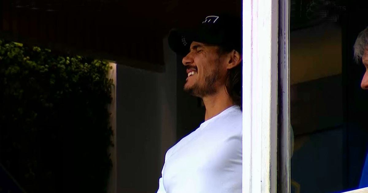 La imagen viral de Cavani por su dolor en la espalda