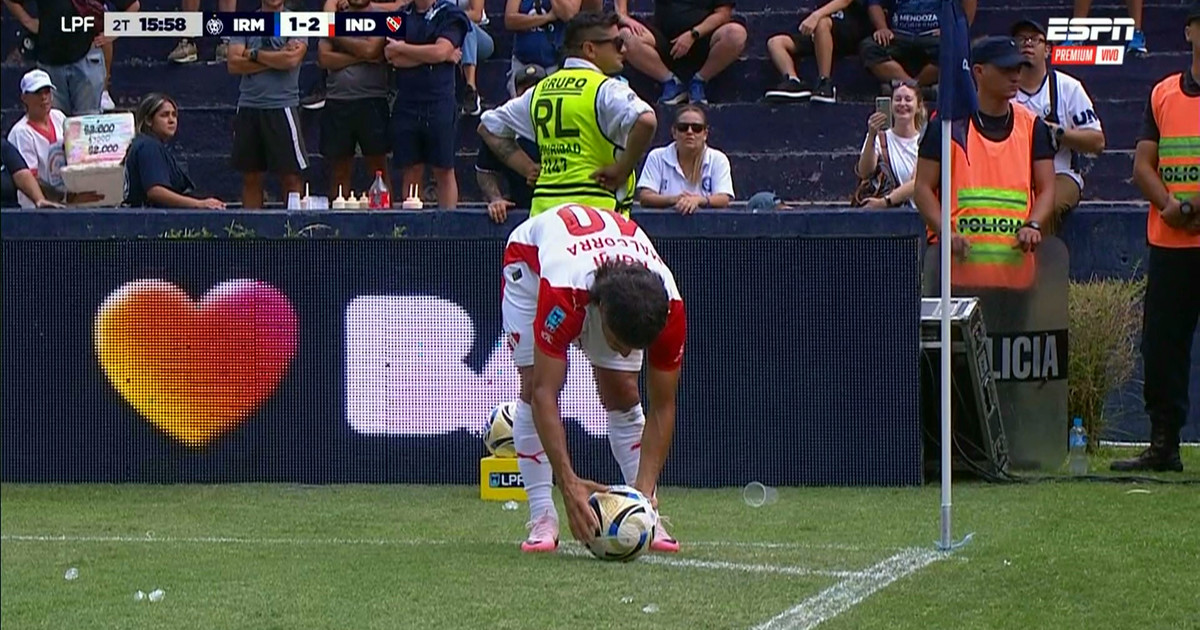 El volante de Independiente iba a tirar un córner, pero se demoró por agresiones desde la popular local. Además, volaron proyectiles. ...