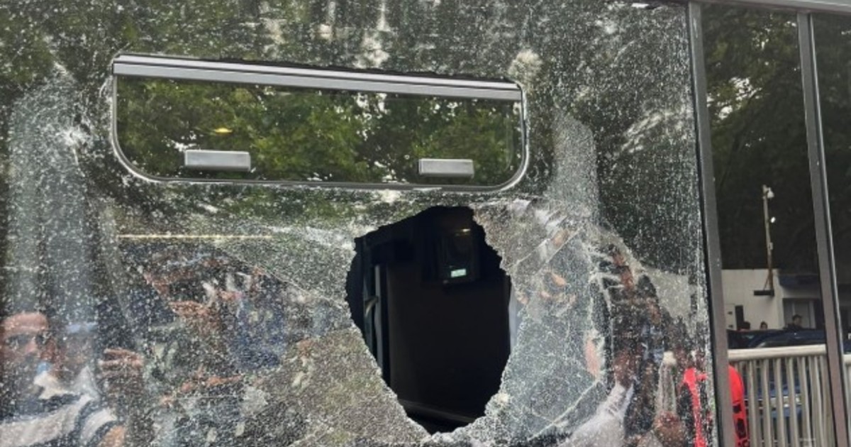 Video: así quedó el micro de Estudiantes después de recibir piedrazos en su llegada al Bosque